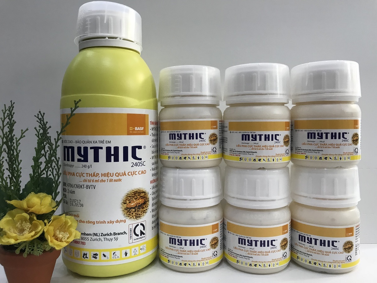 Thuốc diệt mối Mythic 240SC ( sản phẩm của Basf Se CHLB Đức ) là dòng sản phẩm cao cấp, xuất hiện sau thuốc diệt mối Agenda 25EC. Đây là dòng thuốc diệt mối có tính lan truyền quần thể mối lớn, giá thành cao hơn các loại thuốc diệt mối khác. Qui cách chai 1 lít và 100ml.