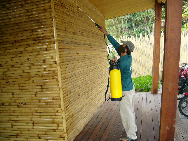 - Để trị mối gỗ khô và côn trùng cần phun quét khắp bề mặt, và kết hợp với bơm tiêm thuốc.