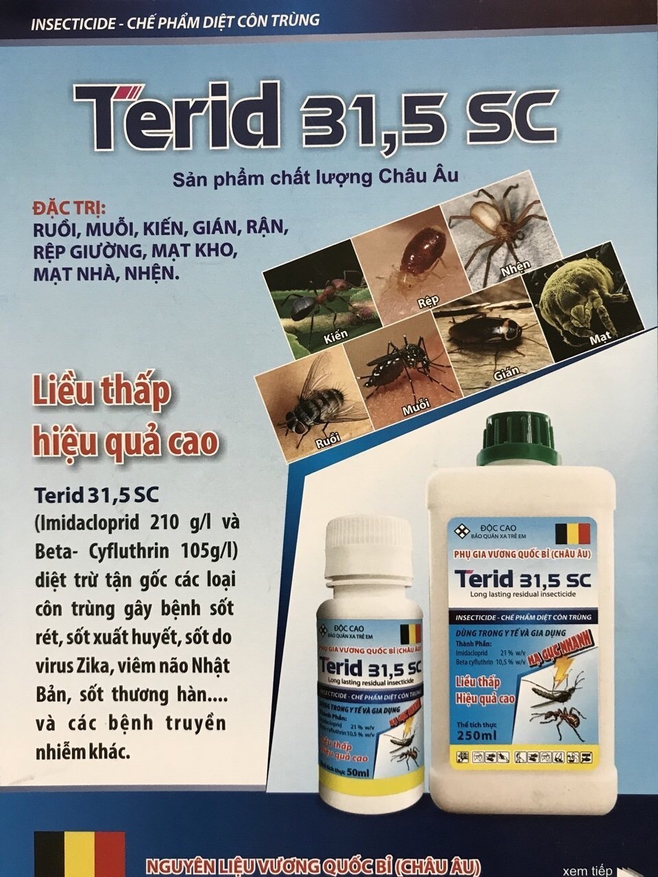 Thuốc diệt mạt gà Terid 31.5sc chai 50ml pha với 5 lít nước, giá 120.000 đ/chai